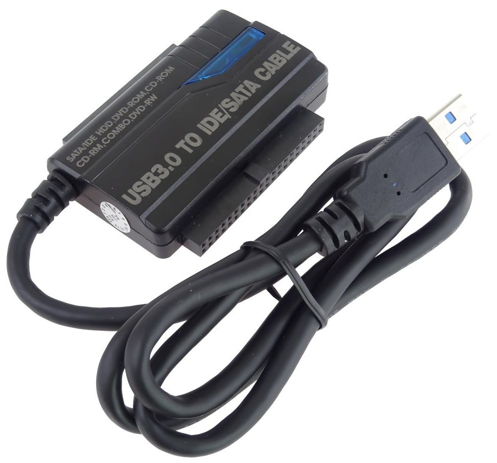 Konvertor pro připojení všech druhů SATA, IDE zařízení, externích disků a mechanik přes USB 3.0 rozhraní k počítači. Určeno pro operační systémy Windows XP, Vista a Windows 7. Podpora SATA 1,5 Gbps nebo 3,0 Gbps. UASP podpora pro řetězené příkazy, 20% zvýšení výkonu ve špičkách, 50% redukce CPU zatížení při náhodném vyhledávání na disku. Předností je malá spotřeba energie, připojení zařízení za chodu a kompaktní rozměry. Včetně napájecího zdroje pro napájení disků.