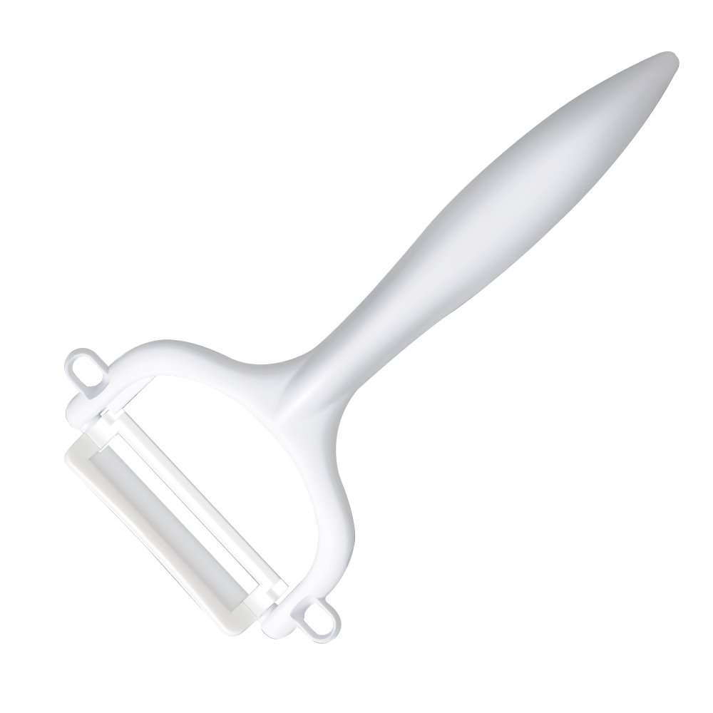 Škrabka na ovoce a zeleninu (na brambory, jablka, okurky a další). Otočné keramické ostří. Odlehčená rukojeť pro pohodlné držení. Vybavena vylupovači na odstranění nerovností (např. oček z brambor).