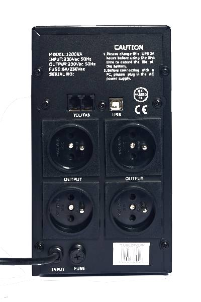 Zdroj je řízený mikroprocesorem a je vybavený komunikačním rozhraním USB. K tomu slouží dodávaný software pro operační systémy Microsoft Windows. Zařízení disponuje také přepěťovou ochranou a ochranou telefonní linky s RJ-11 konektorem. Na čelním panelu vypínač ON/OFF a 3 LED indikující druh provozu.