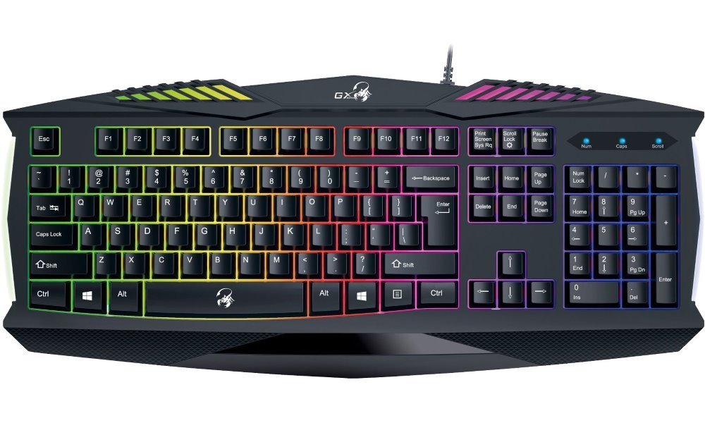 Klávesnice Genius GX Gaming Scorpion K220 je rovněž odolná proti polití a disponuje barevným podsvícením, čímž se eliminují nepříjemné okamžiky při dlouhotrvajících turnajích, závodech nebo brouzdání po fantasy světě v nočních hodinách.