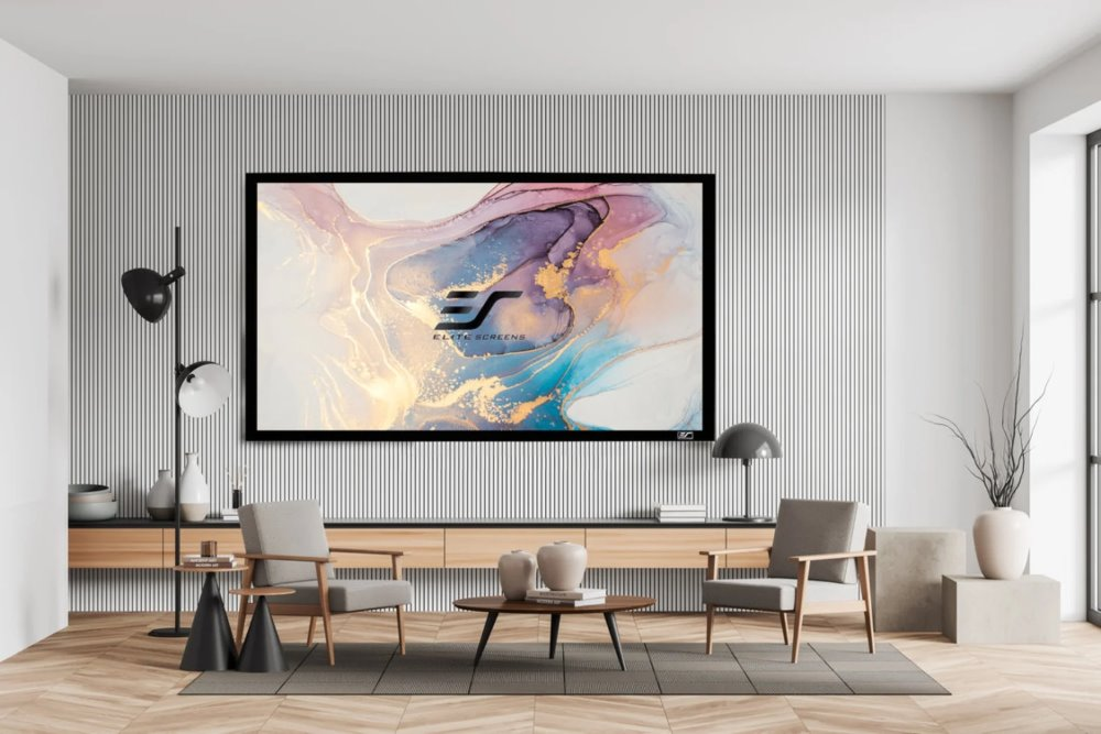 Projekční plátno v pevném hliníkovém rámu s úhlopříčkou 92" (233,7 cm) a poměrem stran 16 : 9. Snadná montáž a instalace během několika minut. Šířka rámu 6 cm.