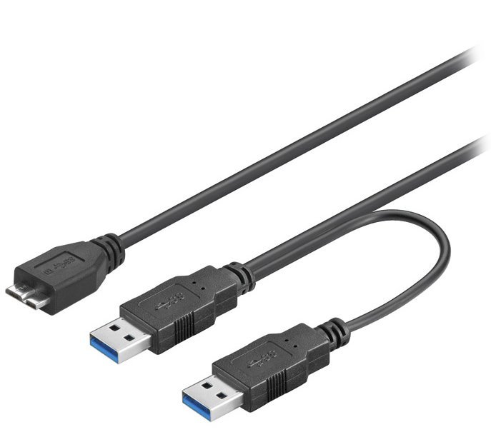 Tento kabel je vhodný pro dvojité napájení externího 2,5" HDD nebo jiného zařízení vybaveného Micro USB B konektorem.
