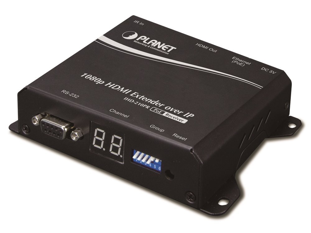 Přijímač distribuce pro extender přes síť LAN (ethernet), podpora rozlišení Full HD, komprese H.264. Přenos 64 nezávislých kanálů. Podpora identifikace EDID a ochrany HDCP. Spojení bod-bod nebo multicast. Správa utilitou, IR přijímač pro ovládání, VESA montáž, napájení PoE nebo adaptérem.