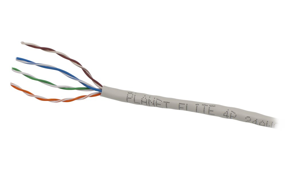 Kabel UTP-drát, 4 páry, drát, kategorie Cat5e Planet Elite, balení 100 m.