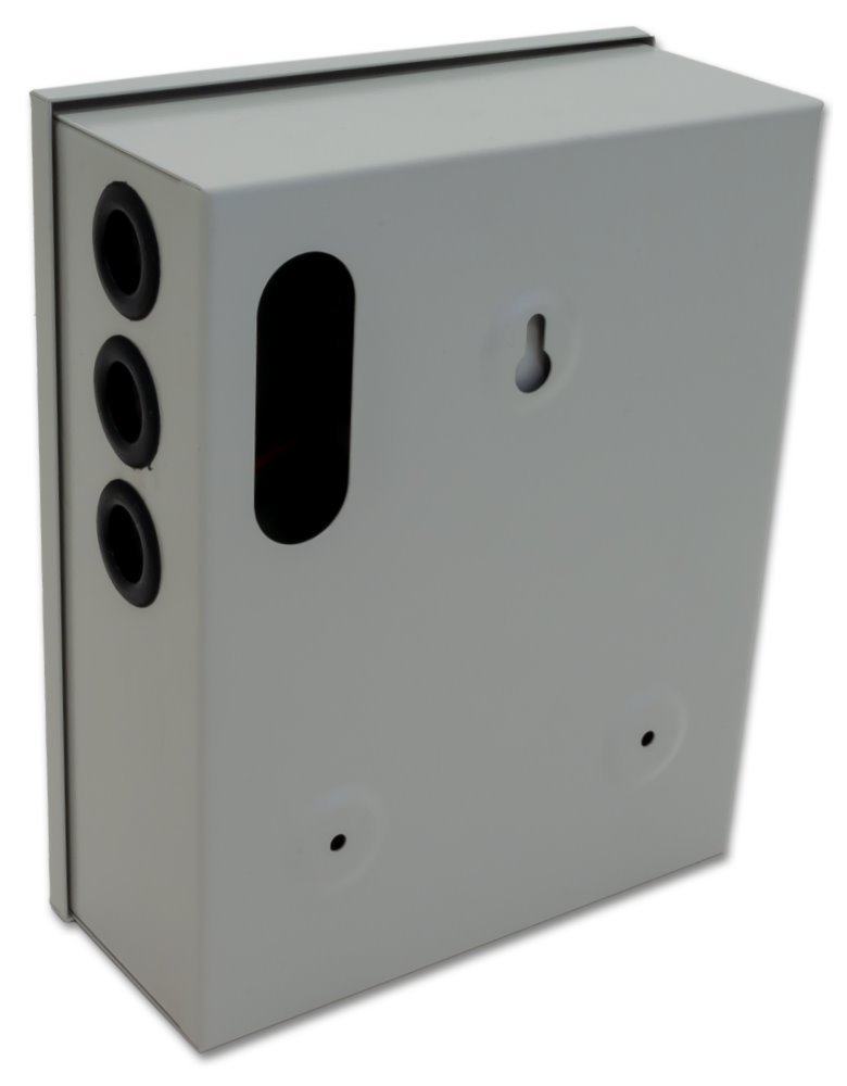 Stabilizovaný napájecí zdroj s jedním výstupem, s okruhem pro nabíjení a připojení záložní baterie. Celkový výstupní proud 3 A. Skříňka na zeď s instalovaným PCB, kabelové průchodky, vypínač uvnitř skříňky. Připojení kabelů k interní svorkovnici, možnost odpojení výstupu propojkou bez nutnosti odpojování vodičů. Ochrana proti zkratu přístrojovou pojistkou, ochrana proti přepětí. LED diody diagnostikují stav portů, na první pohled je např. rozpoznatelná vyhořelá pojistka. Bateriový okruh dobíjen 1 A. Ochrana proti zkratu baterie a ochrana baterie proti úplnému vybití.