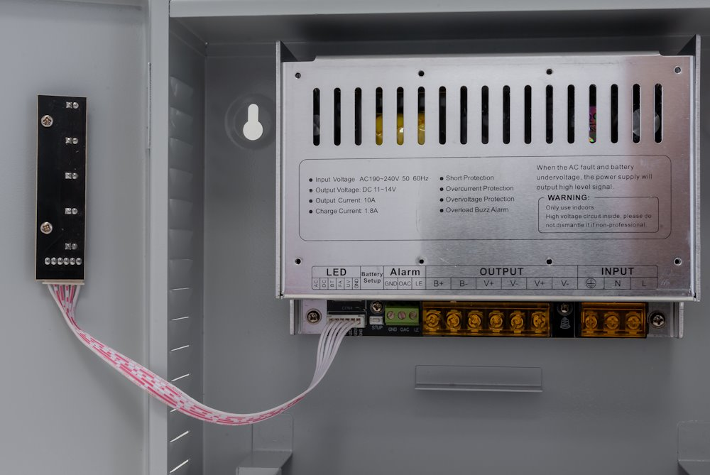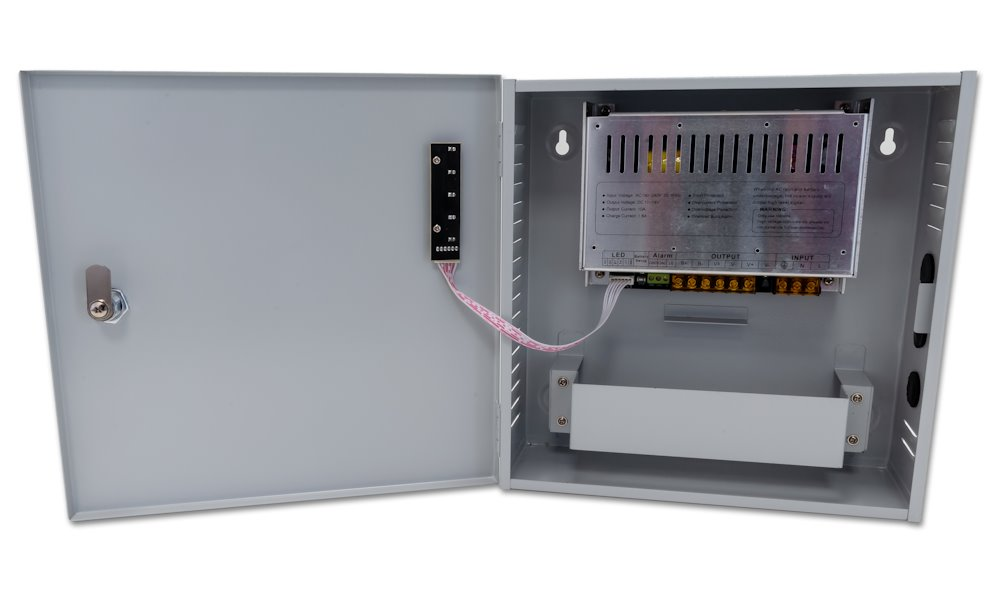 Napájecí zdroj se 2 výstupy a okruhem pro nabíjení + připojení záložní baterie. Celkový výstupní proud je až 10 A.