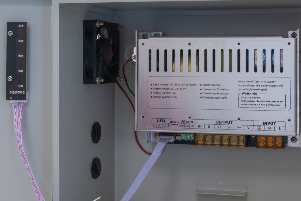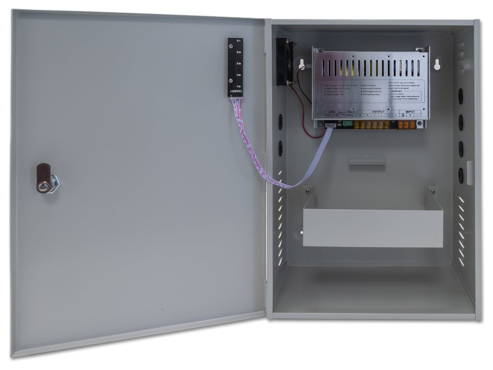 Napájecí zdroj DC 24 V se 2 výstupy a okruhem pro nabíjení + připojení záložní baterie na 24 V. Celkový výstupní proud je až 10 A.