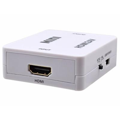 Konvertor signálu HDMI na kompozitní signál spolu se stereo audio. Výstup volitelný přepínačem, zda v normě PAL nebo NTSC.
