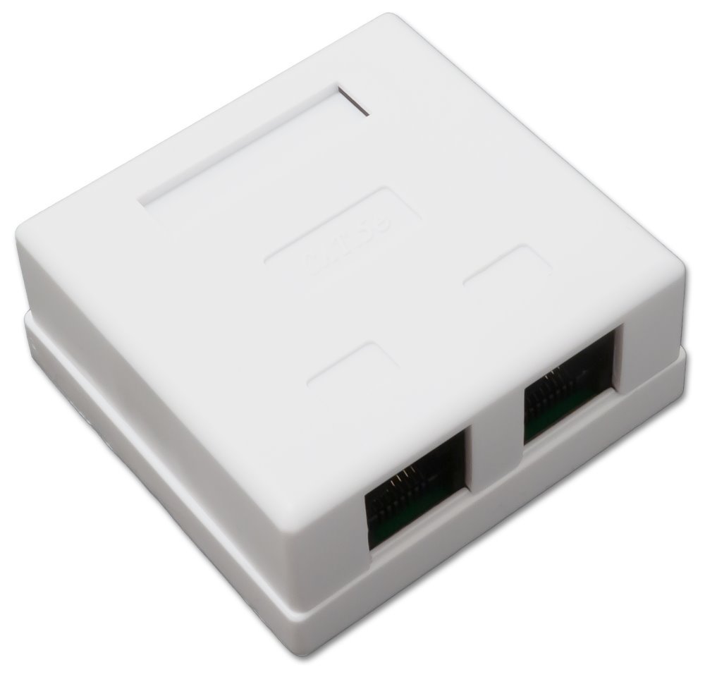 Nestíněná zásuvka na zeď se 2 konektory RJ-45, narážecí kontakty.