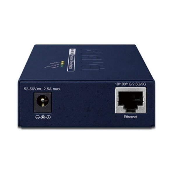 End i Mid-span. Zpětně použitelný s PD IEEE 802.3af/at. Desktop nebo do šasí, externí napájecí zdroj DC 52-56 V.