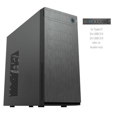 Počítačová skříň v moderním designovém provedení s broušeným efektem nabízí jednu 2,5" pozici pro SSD disky a čtyři 3,5" pozice pro pevné disky. Na čelní straně se pod horní krytkou nachází dva USB 3.0, dva USB 2.0 a jeden USB-C port (USB 2.0 verze 480 Mbit/s). K dispozici je také sluchátkový výstup a vstup pro mikrofon. Skříň je možno osadit předním a zadním ventilátorem. Ve skříni je dostatek prostoru pro chladič CPU do výšky až 155 mm a grafickou kartu o délce až 250 mm. Po demontáži klece pro dva 3,5" HDD, je možné využít grafickou kartu o délce až 380 mm. Skříň je dodávána bez zdroje.