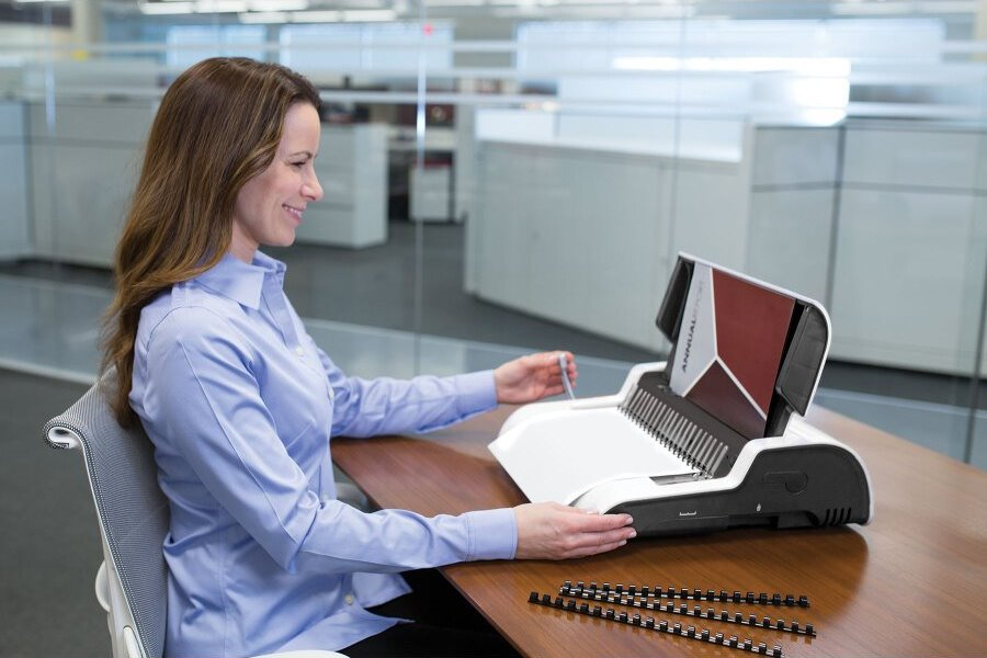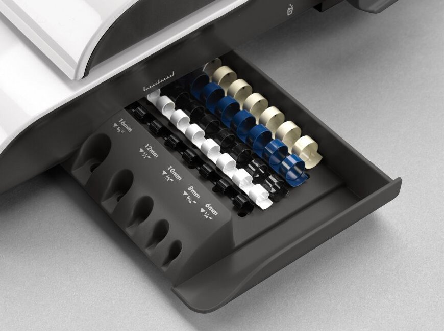 Elektrický vázací stroj pro děrování až 20 listů najednou. Děrovací vertikální mechanismus zjednodušuje a zrychluje proces vazby. Stroj je vybaven zásobníkem na uložení hřbetů a integrovanou měrkou pro správnou volbu průměru hřbetu. Součástí balení je sada 10 obálek a hřbetů.