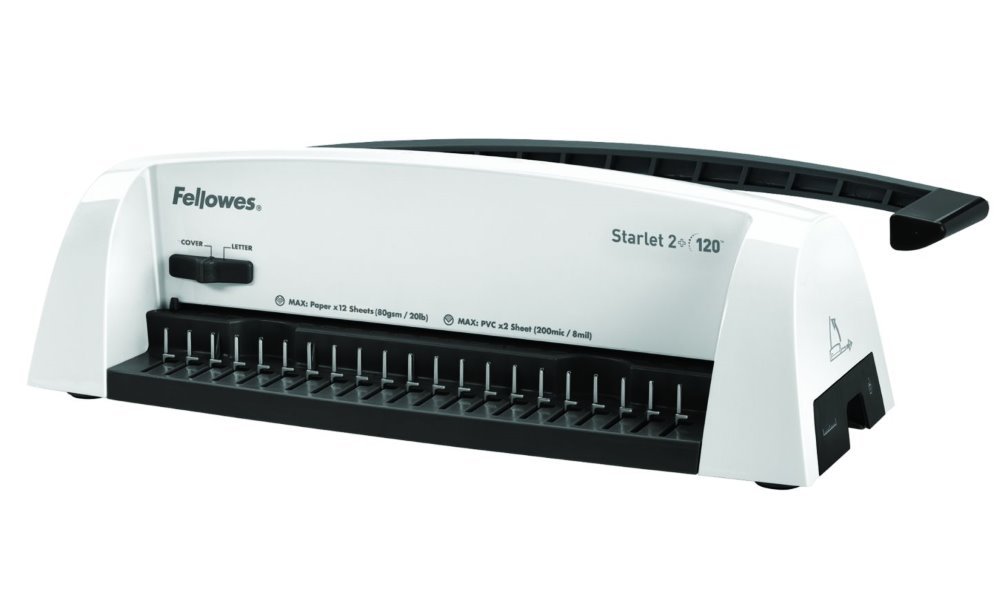Vázací stroj pro děrování až 12 listů najednou. Speciální zásobník na hřbety s patentovaným systémem měření tloušťky dokumentů a výběru správného hřbetu. Díky dvěma přednastaveným pozicím pro A4 a A5 je obsluha vazače rychlá a snadná.