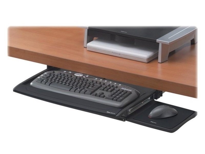 Držák umožňuje umístit klávesnici do vhodné výšky, nabízí možnost instalace ve výškách 44 mm, 54 mm, nebo 64 mm. Díky bočním zarážkám je navíc klávesnice zabezpečena proti posouvání se. Ergonomické tvarování podložky pod zápěstí zaručuje náležitou podporu pro zápěstí a komfort práce. Pokud klávesnice není používaná, je možné zásuvku uložit pod desku psacího stolu. Podstavec pod myš může být umístěn jak na pravé, tak i na levé straně.