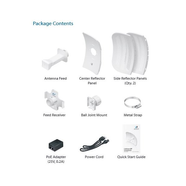 Pro vysoké přenosové rychlosti jednotka využívá standard 802.11a/n a revoluční protokol AirMAX (TDMA) pro dosažení nízkých latencí. Anténní systém se skládá z 23dBi antény. S jednotkami LiteBeam je tak možné připojit klienta až na vzdálenost 30 km.