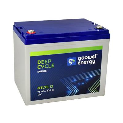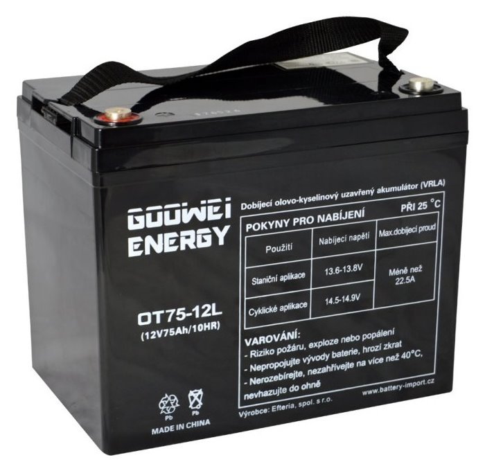 Olověný 12 V (75 Ah) akumulátor v provedení VRLA GEL navržený pro hluboké vybíjení i cyklické namáhání. Je tak vhodný pro záložní systémy.