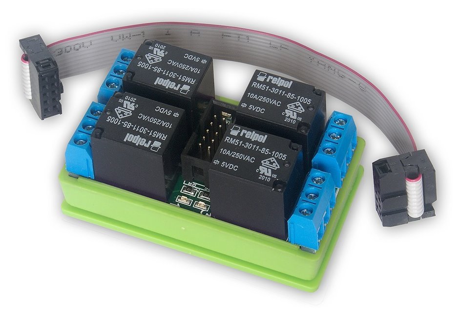Tento profesionální reléový modul obsahuje 4 nezávislá relé s přepínacími kontakty, která umožňují zapínání, vypínání a resetování připojených zařízení. Modul je navržen pro kompatibilitu s LAN kontroléry řady LK4, LK3.5+ (včetně LK3.9), LK3.0 a LK2.5 prostřednictvím standardního IDC10 konektoru.