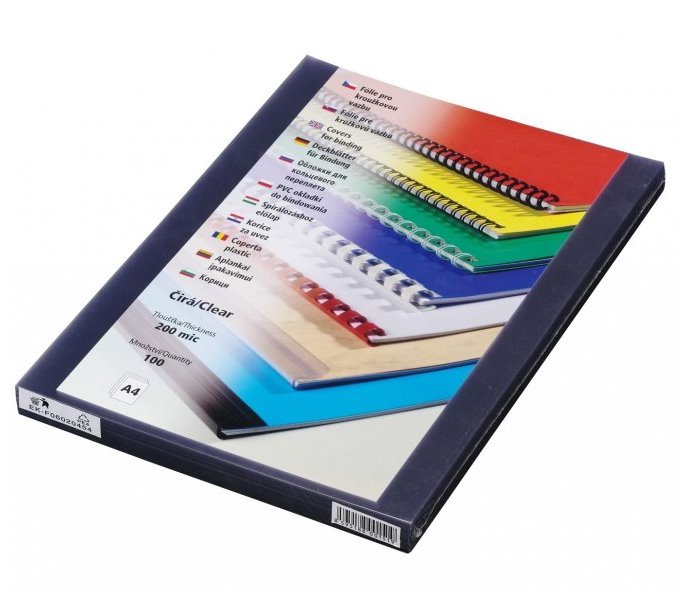 Vázací desky formátu A4 jsou vhodné pro tvorbu kroužkové vazby, zaručují profesionální vzhled a trvalost prezentace. Přední strana je z transparentní fólie, zadní strana z kartonu s ražbou imitace kůže. Umožňují vázaní dokumentů o kapacitě vazby do 60 listů formátu A4 (80 g). V balení je 100 kusů.