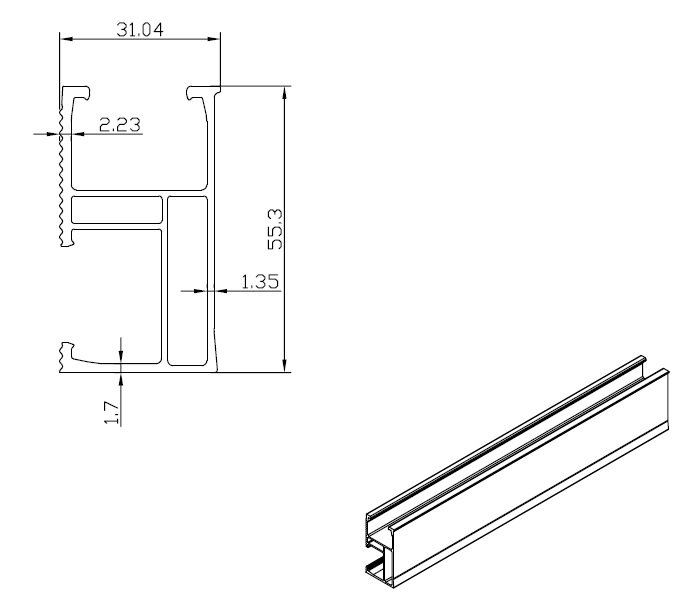 Hliníková lišta sloužící pro uchycení solárního panelu. Na boční straně je vybavena profilem pro instalaci střešního háku případně profilu pro kombivrut nebo držák na plechové střechy. Do horního profilu se instalují koncové a středové držáky panelu.
