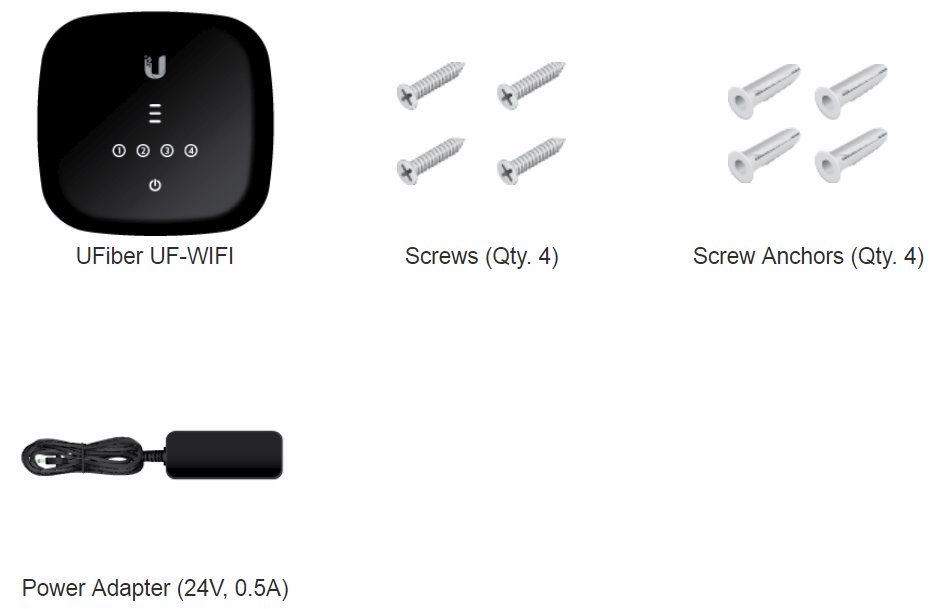Jednotka UFiber WiFi disponující vstupním GPON portem typu SC/APC (WAN) a 4 výstupními porty RJ-45. Maximální rychlost pro downstream je 2,488 Gbps (RX) a pro upstream je 1,244 Gbps (TX) na rozhraní WAN. UFiber WiFi navíc podporuje 2,4 GHz Wi-Fi připojení 300 Mbit/s dle standardu 802.11n, nemusíte tak přikupovat další Wi-Fi router.