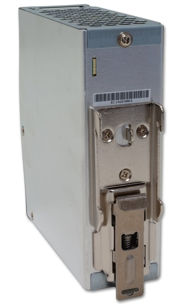 Napájecí zdroj pro instalaci na DIN lištu. Výstupní napětí regulovatelné v rozsahu 24-28 V DC, zatížitelnost 120 W. Provozní teplota -20 až +70 °C.