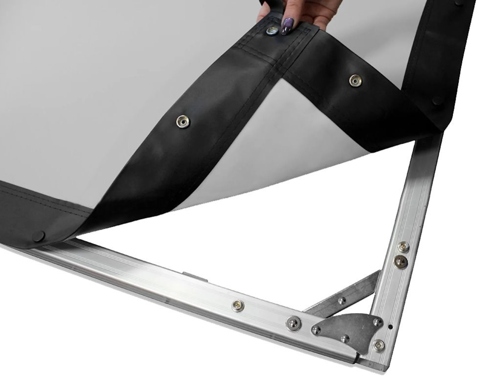 Venkovní projekční plátno s úhlopříčkou 100" a skládacím rámem. Díky své konstrukci z lehkého hliníku je perfektní volbou pro promítání pod širým nebem – ať už v kempu, parku nebo na zahradě. Materiál WraithVeil nabízí široké pozorovací úhly a perfektní vyvážení barev.