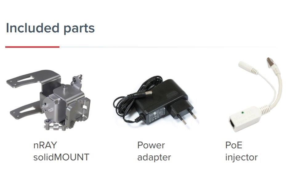 Wireless Wire nRAY je vysokorychlostní Point-to-Point jednotka pracující na frekvenci 60 GHz standardu 802.11ad a dosahem až 1,5 km. RouterBOARD je poháněn dvoujádrovým procesorem ARM 88F3720 o taktu 1 GHz, který je doplněný o 256 MB RAM paměti. Napájení jednotek je řešeno skrze PoE injektor standardu 802.3af/at.