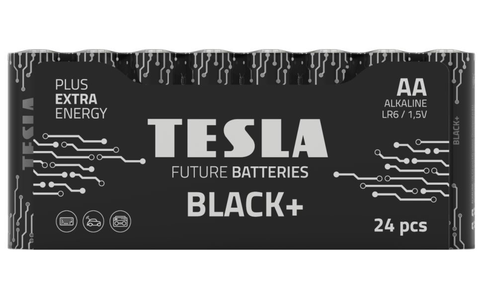 Alkalické baterie formátu AA s napětím 1,5 V. Řada BLACK+ zahrnuje alkalické baterie určené pro zařízení s nižší potřebou proudu. Jsou tak ideálním řešením pro zařízení jako jsou klávesnice, počítačové myši a ovladače. V jednom balení je 24 kusů baterií.