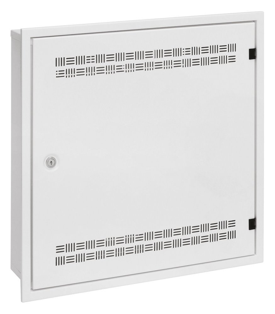 Rozvaděč, do zdi, 19", s lištami 2U, 4U a 11U, IP20, perforované dveře, s rámečkem k zazdění, bílý