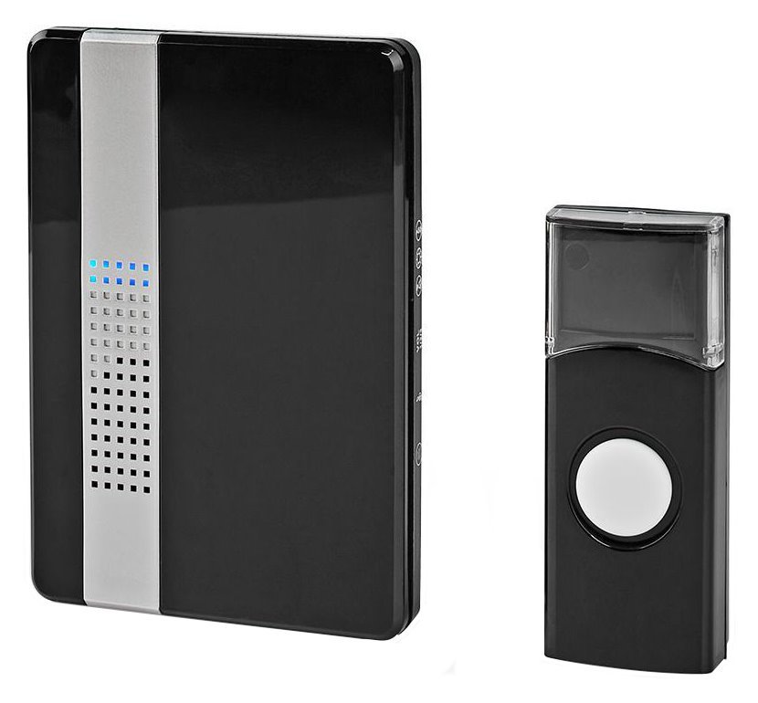 Bezdrátový zvonek s dosahem až 300 m při přímé viditelnosti. Po stisknutí tlačítka na zvonku se rozezní jedno ze 36 nastavitelných vyzvánění s hlasitostí až 80 dB. Napájení zvonku je realizováno ze sítě 230 V, napájení vysílače pak baterií typu CR2032.