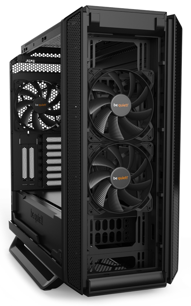 Kvalitní počítačová skříň formátu Middle Tower, která na první pohled zaujme průhlednou bočnicí. Perfektně kombinuje vysoký stupeň modularity s absolutní tichostí. Vybavena je třemi prakticky neslyšitelnými ventilátory, které je možné díky regulátoru přepínat mezi režimy ticha nebo výkonu. Potěší také možnost rozšíření o dalších pět ventilátorů. Na horní straně se nachází dva USB 3.0 porty, jeden USB-C port, sluchátkový výstup a vstup pro mikrofon. Podporuje montáž základních desek E-ATX, ATX, M-ATX a MINI-ITX. Pro disky pak slouží tři 3,5" pozice nebo až sedm 2,5" pozic. Důmyslné řešení umožňuje pohodlné umístění až 420 mm dlouhého výměníku vodního chlazení na přední straně. Skříň je dodávána bez zdroje.