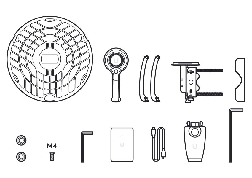 Jednotka je složená z kovového držáku, parabolické antény se ziskem 38 dBi a 3 plastových nožiček držících zářič.
