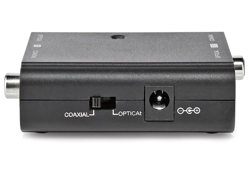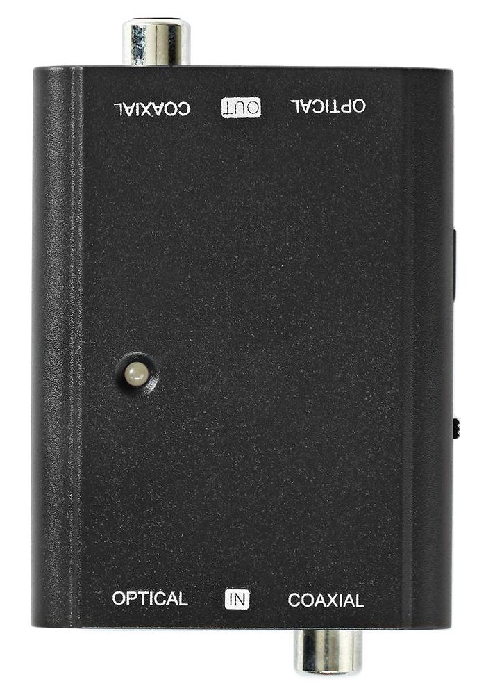Konektory: 2 x Toslink (vstup a výstup), 2 x RCA (vstup a výstup)