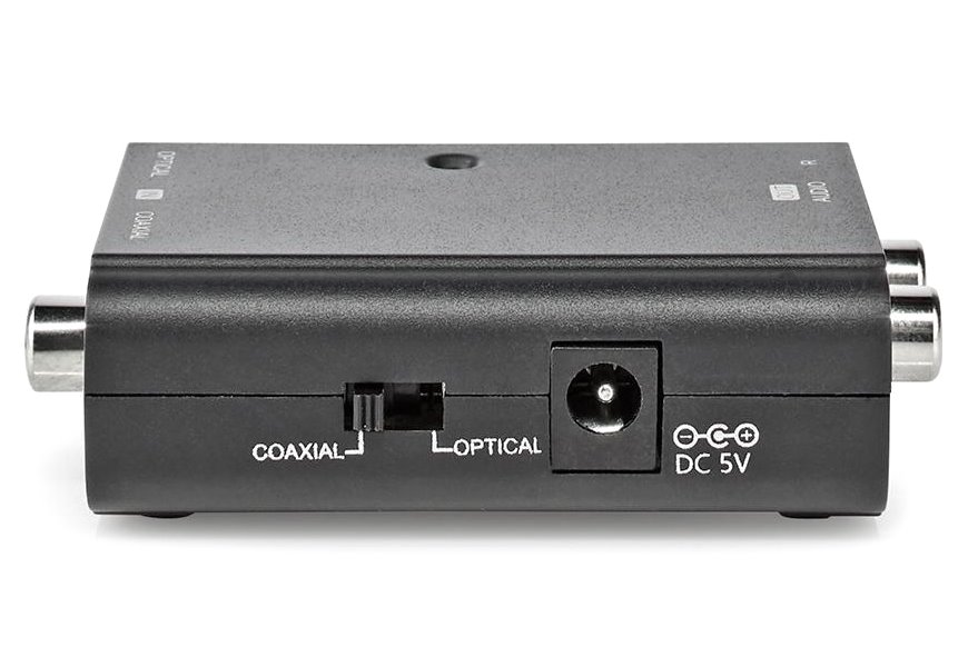 Připojte nejnovější digitální obrazovky s optickými výstupy k zesilovačům s analogovými připojeními. Tento digitální audio na stereo RCA převodník převádí digitální Toslink nebo RCA audio signál na analogový stereo audio signál. Dodává se s nabíjecím kabelem DC-USB (adaptér není součástí balení).