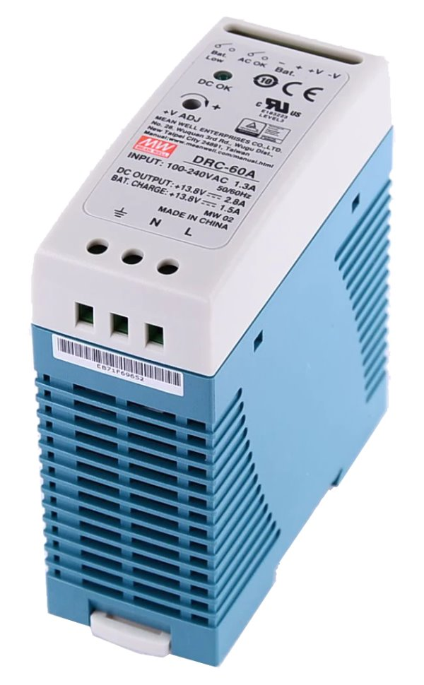 Průmyslový dvoukanálový napájecí zdroj 13,8 V pro instalaci na DIN lištu s rozsahem vstupního napětí 90-264 V (AC) nebo 127-370 V (DC) a výkonem 60 W. Je určený pro aktivní prvky s odpovídajícím napájecím rozsahem. Životnost MTBF (střední doba mezi poruchami) je více než 504 100 hodin, navíc zdroj splňuje vojenský standard MIL-HDBK-217F.