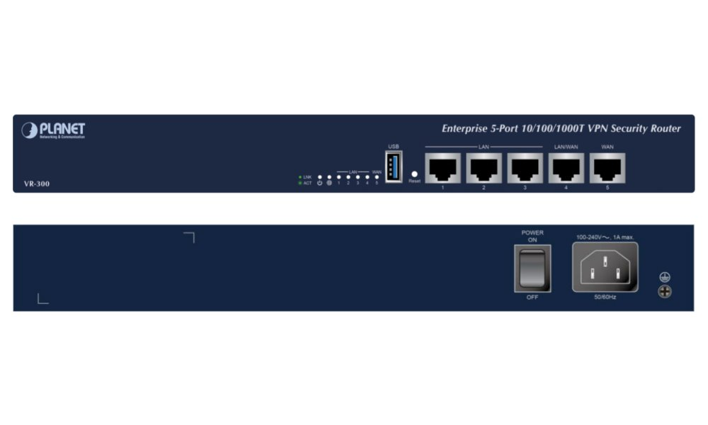 Gigabitový bezpečnostní VPN router disponující pěti RJ-45 porty, firewallem, podporou dual WAN a se snadným nastavením pomocí webového rozhraní, SNMP, UNI-NMS nebo PLANET Smart Discovery. Jedná se o řešení "vše v jednom".