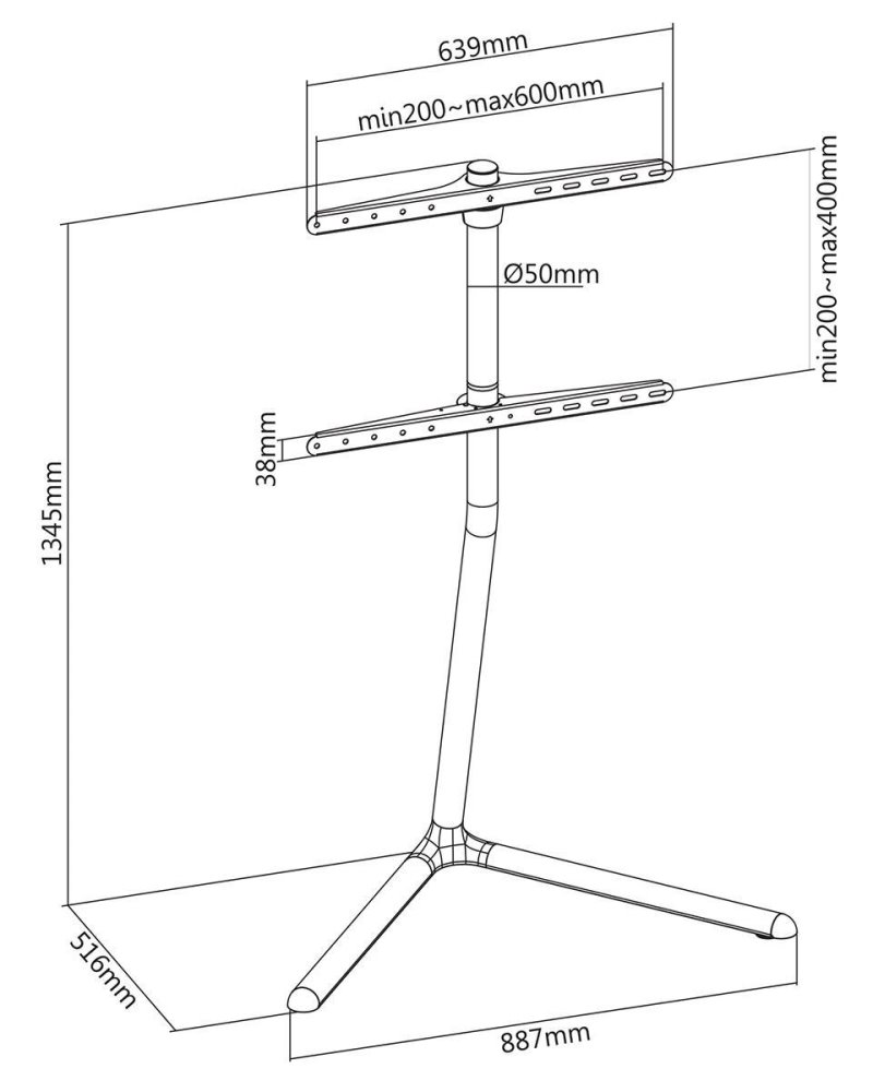 Podlahový stojan pro montáž televize s úhlopříčkou 49" až 70". Minimalistický, přesto elegantní design se hodí do každého interiéru. Základna ve tvaru písmene V je vybavena gumovými podložkami a společně s dodávaným bezpečnostním popruhem zajistí potřebnou stabilitu a minimalizuje riziko převrhnutí. Potěší také vestavěný systém správy kabeláže. Maximální zatížení stojanu je 40 kg.