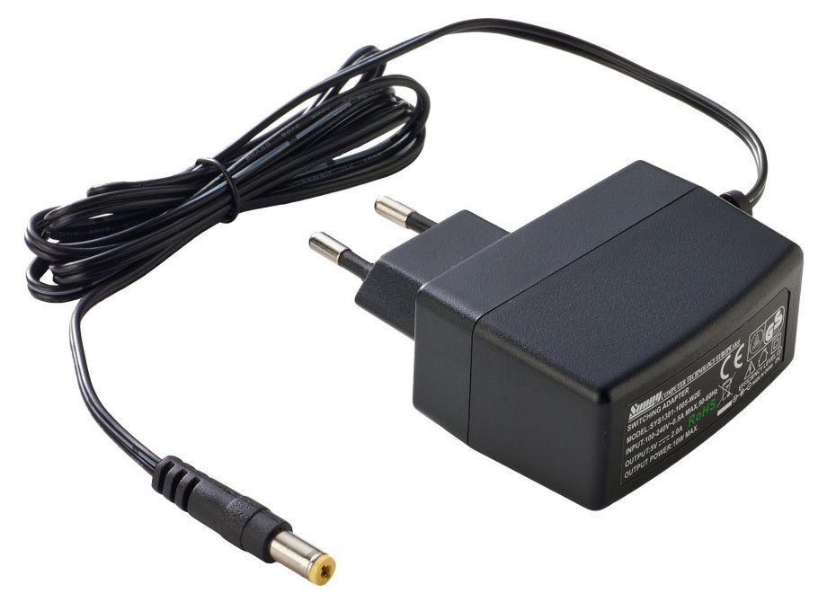 Univerzální spínaný napájecí zdroj s výkonem 12 W při napětí 7,5 V a maximálním proudu 1,7 A. Rozměr konektoru 5,5 x 2,1 x 11 mm a délka kabelu 1,4 m.