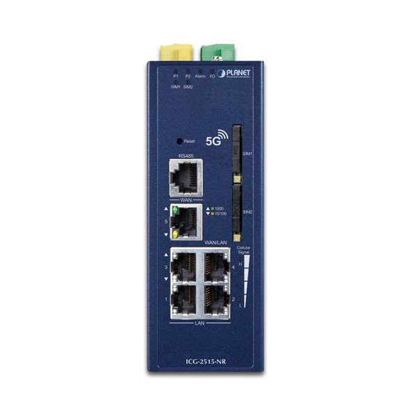 Průmyslová Ethernet 5G/LTE brána pro možnou aplikaci v rámci sítí IoT (Internet věcí), průmyslovou automatizaci M2M (machine to machine), ale i pro běžné připojení do internetu v mobilních prostředcích. Brána se může stát robustním prvkem infrastruktury vaší zákaznické datové sítě.