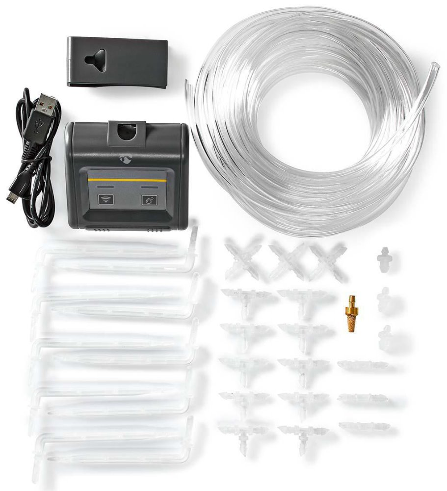 Chytrý zavlažovací systém umožňuje dálkově spravovat či automatizovat zalévání vašich rostlin a posunout tak péči o ně na další úroveň. Stačí umístit vodní čerpadlo do blízkosti rostlin, odříznout a použít dodané hadice k propojení rostlin s čerpadlem a čerpadla se zdrojem vody (kbelík, konev). Čerpadlo dokáže vytvořit tlak vyšší než 2 bary, takže je dostatečně silné, aby snadno čerpalo vodu do celkové výšky až 3 metry. Prostřednictvím aplikace pro chytré telefony lze nastavovat automatické zavlažovací cykly, určit dobu zalévání v rozsahu 6 sekund až 30 minut, nebo čerpadlo přiřadit k jinému již existujícímu scénáři. Samozřejmostí je pak upozornění na vyčerpaný zdroj vody. Stejně jako ostatní produkty z řady Nedis SmartLife lze i tento zavlažovací systém ovládat hlasem pomocí Google Assistant i Amazon Alexa. Napájení je realizováno čtyřmi AA bateriemi (nejsou součástí balení), nebo skrze micro USB port.