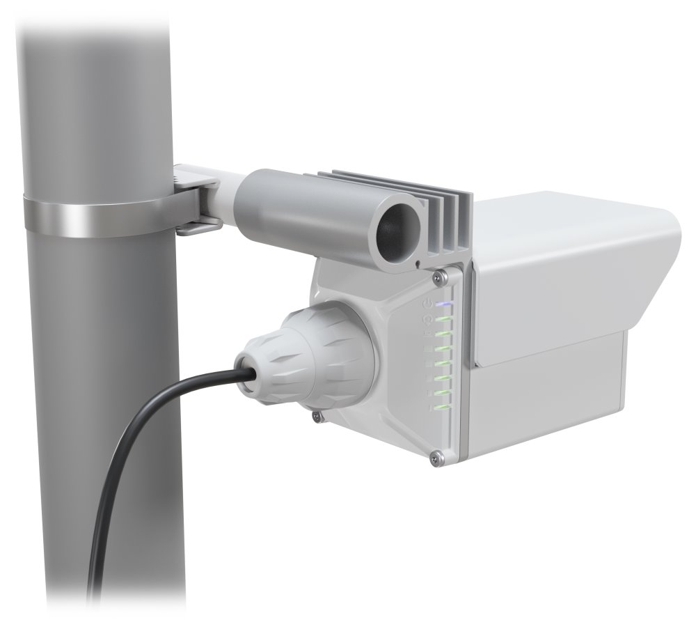 Součástí jednotky je předinstalovaná licence RouterOS MikroTik L4. Tato licence je plně dostačující pro vytvoření spoje "Point to Point" (bod-bod). Jednotka má integrovaný PoE splitter, lze ji tedy napájet přímo po F/UTP kabelu (PoE+ 802.3af/at).