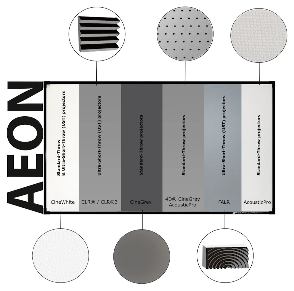 Aeon AcousticPro UHD je akusticky transparentní (AT) projekční plátno s pevným rámem. Akusticky průzvučný materiál AcousticPro UHD je navržen tak, aby doplňoval nástěnné reproduktory a zároveň umožňoval průchod zvuku materiálem s minimálním útlumem. Jeho konstrukce s hustou perforovanou vazbou umožňuje dosáhnout vynikajícího výkonu AT bez ztráty kvality obrazu.