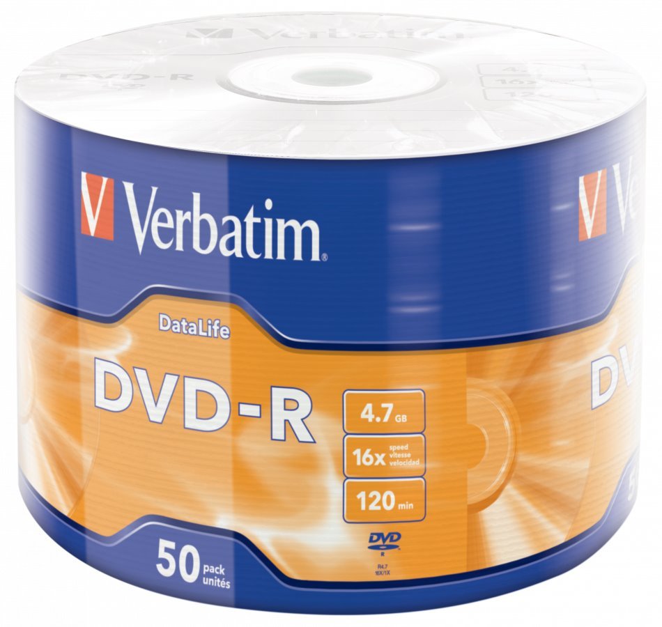 Balení 50 DVD medií, které nabízí maximální rychlost zápisu až 16x a kapacitu 4,7 GB.