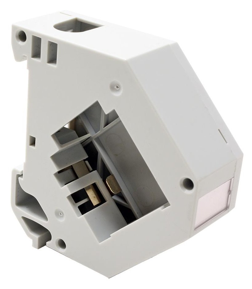 Plastový držák pro 1 keystone na DIN lištu. Integrovaný kovový pásek zajišťuje uzemnění keystone modulu.
