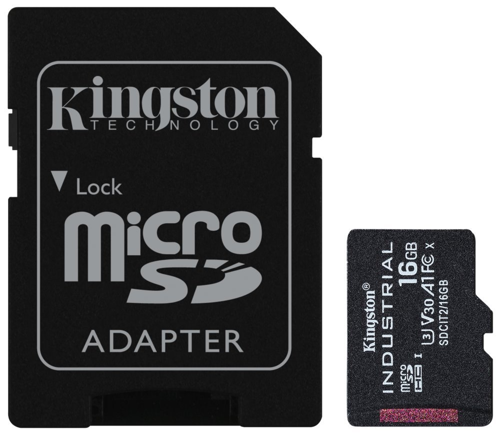Paměťové úložiště splňuje také certifikace V30 a A1 pro efektivní provoz Android aplikací ve vysoké rychlosti, bez zpoždění a sekání. Kapacita úložiště 16 GB je vhodná pro každodenní použití a ukládání běžných dat. Uplatní se jako paměťová karta v mobilních zařízeních nebo kamerách. Součástí balení je SD adaptér, díky kterému kartu Kingston Industrial jednoduše připojíte k PC nebo notebooku skrze čtečku.
