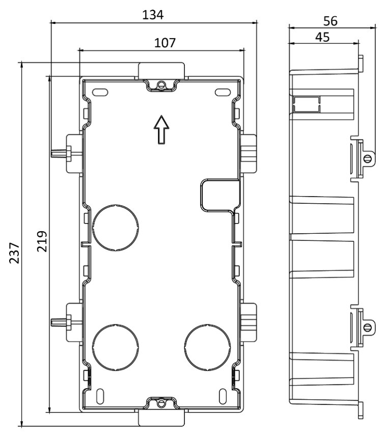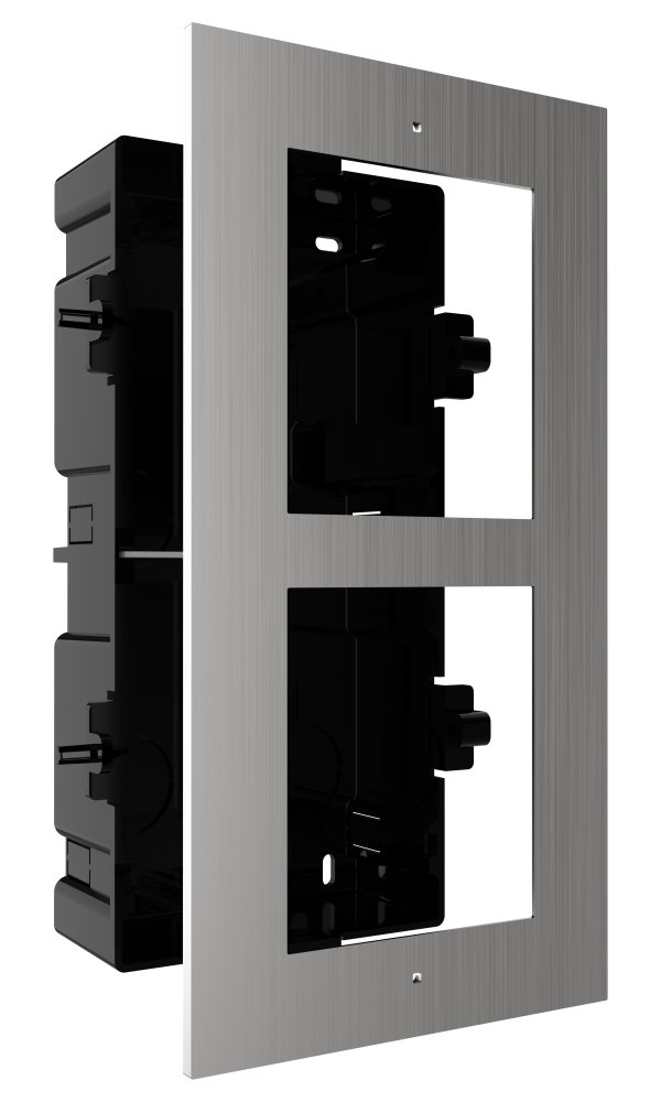Hikvision DS-KD-ACF2/S Zápustný kryt (podomítková krabice) pro 2 základní moduly. ZÁKLADNÍ SPECIFIKACE Materiál: nerez (broušená ocel), plastový box Rozměry (rámeček): 236 × 124 × 4 mm Rozměry (box): 237 × 135 × 56 mm Barva: stříbrná–černá