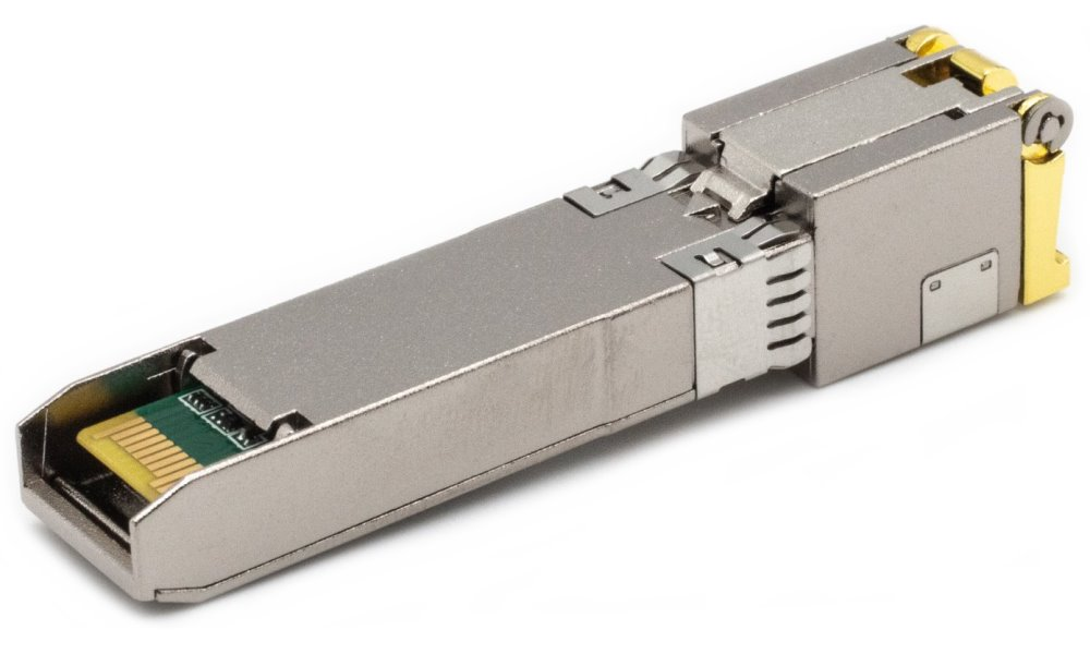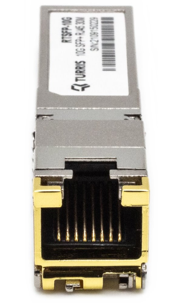 SFP+ metalický modul s konektorem RJ-45 a přenosovými rychlostmi 1/2.5/5/10 Gbps. Dosah modulu je při použití kabelu Cat6a a rychlosti 10 Gbps až 30 m, při 1 Gbps až 100 m. Modul je primárně určen pro Turris MOX a Turris Omnia, kde dokáže využít rychlosti až 2,5 Gbps.