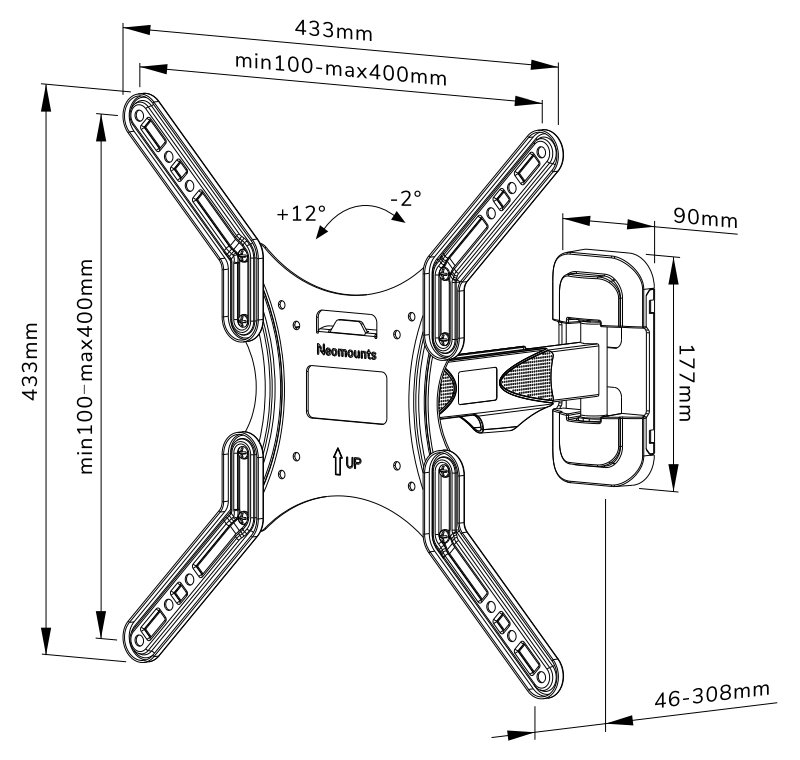Plně pohyblivý nástěnný držák pro ploché obrazovky od 32" do 55" s maximální nosností 35 kg. Všestranná technologie naklápění a otáčení umožňuje vytvořit optimální pozorovací úhel. Pro dosažení ideální instalace lze držák vyrovnat do vodorovné polohy. Držák má hloubku 4,6 až 30,8 cm a je vhodný pro obrazovky, které odpovídají vzoru otvorů VESA 100 × 100 až 400 × 400 mm.