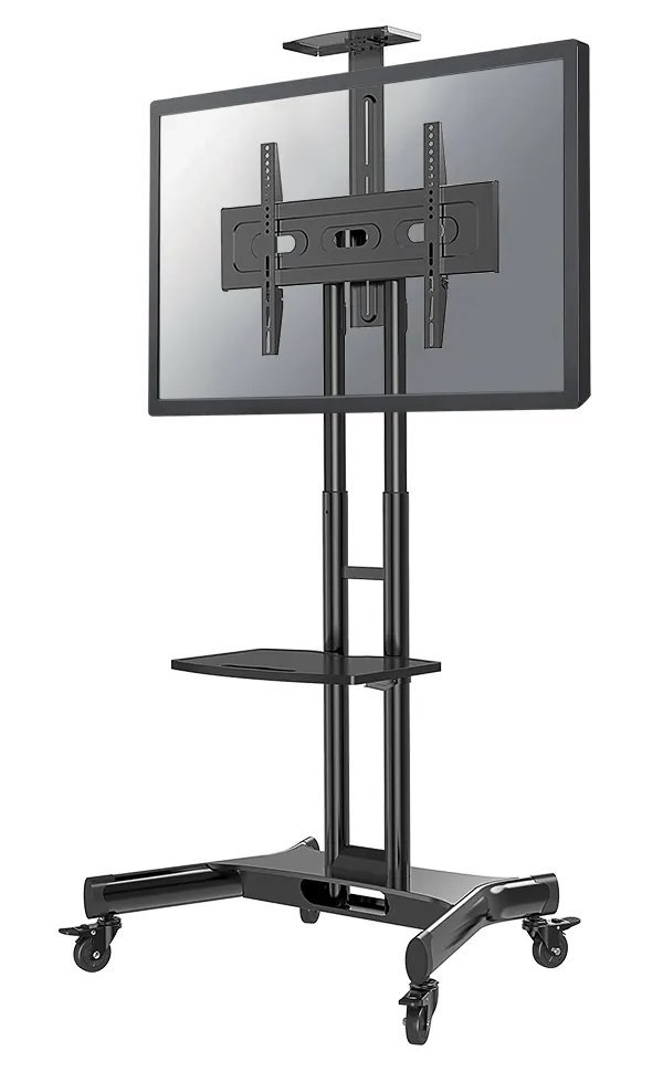 Mobilní podlahový stojan pro ploché obrazovky s úhlopříčkou od 32" do 75" a hmotností až 50 kg. Držák je manuálně výškově nastavitelný v rozmezí 104,2 až 154,2 cm. Navíc disponuje 2 policemi pro příslušenství a kameru.