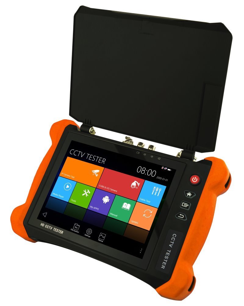 Tester kamerových systémů pro všechny moderní HD analogové a digitální kamerové systémy. Je zvláště vhodný pro práci v terénu, kdy je třeba odstraňovat závady na kamerových rozvodech provedených pomocí koaxiální a UTP kabeláže. Velmi usnadňuje instalaci a nastavování PTZ kamer - různé protokoly, nastavení rychlosti, otáčení, zoom, ostření, automatický sken, ovládání menu kamer, ovládání aux portů. Tester může být i jen vložen do trasy - má vstup i výstup videosignálu pro všechny systémy. Má rovněž 12 V (2 A) DC výstup pro lokální napájení kamery, 5 V (2 A) DC výstup na USB konektoru a pracuje i jako PoE zdroj (injektor). Šikovná je i možnost pracovat jako malý monitor, například pro připojení na místní DVR.